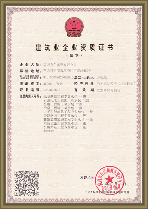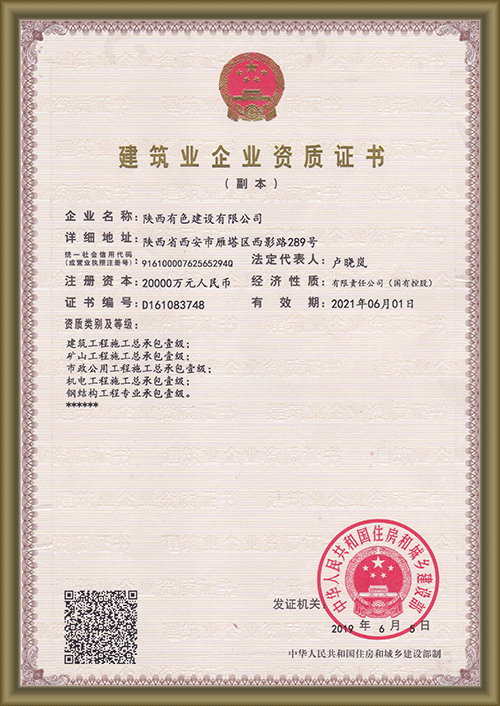 Established in 2004, Shaanxi Nonferrous Construction Co., Ltd., became the holding subsidiary of Xi’an Surveying & Mapping Institute in 2009 which is an enterprise owned by Shaanxi Nonferrous Metals Holding Group, with a registered capital of 200 million Yuan. The company has a Grade-A qualification of general contracting for housing construction engineering, municipal public engineering, mechanical and electrical engineering, and mining engineering; Grade-A professional contracting qualification for ground foundation engineering, steel structure engineering, building decoration engineering, fire-fighting equipment engineering, electronic and intelligent engineering; Grade-B general contracting qualification for >>