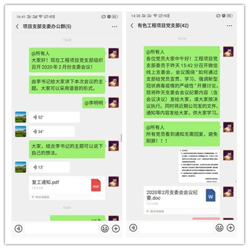 2月9日下午,公司工程項(xiàng)目黨支部利用微信群線上召開(kāi)支委會(huì),圍繞“如何切實(shí)發(fā)揮黨支部作用,帶領(lǐng)支部黨員團(tuán)結(jié)一致做好疫情防控工作”展開(kāi)討論,形成近階段支部工作決議。