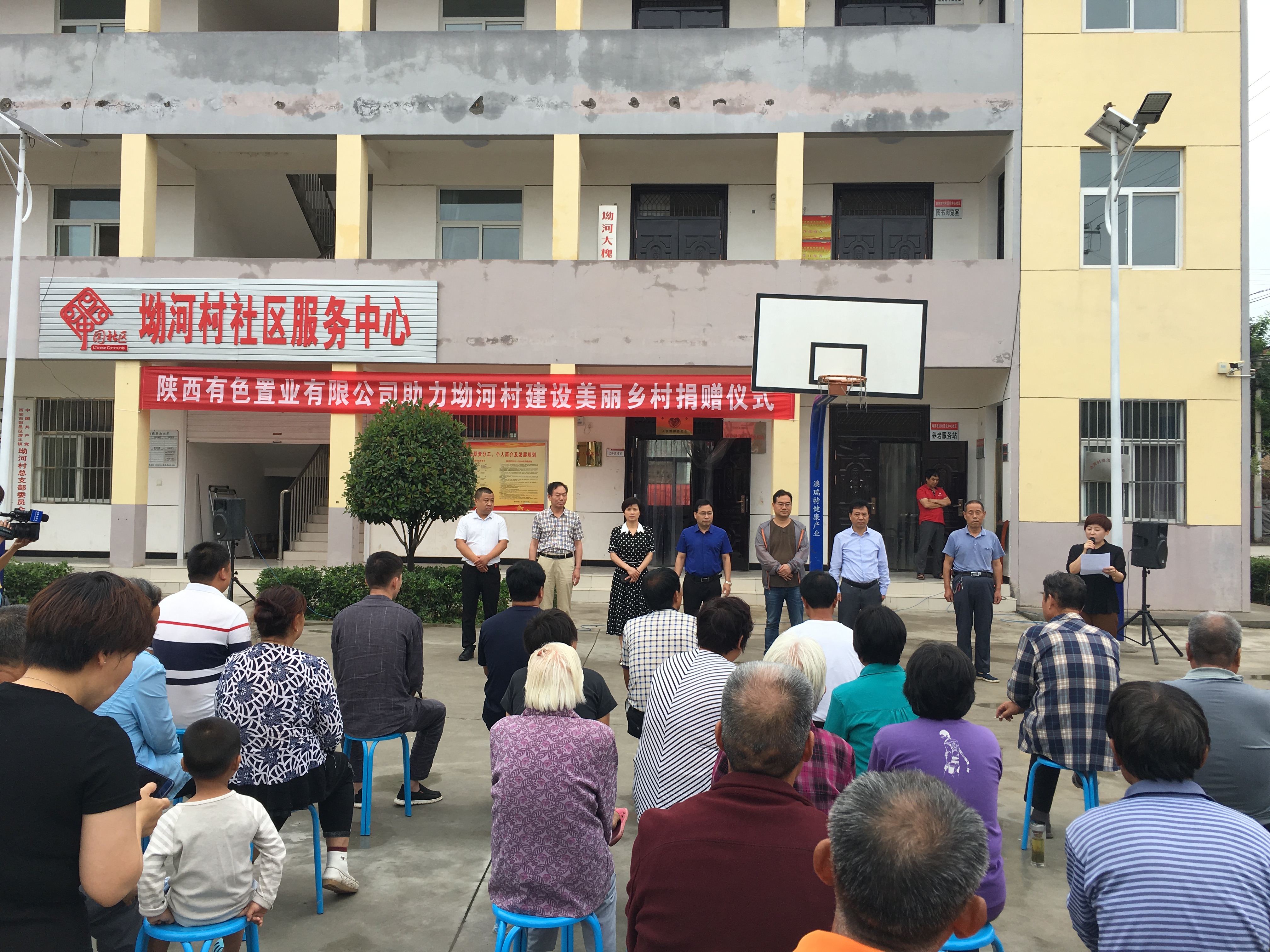 近日,陜西有色置業有限公司在鄠邑區渭豐鎮坳河村舉辦“助力坳河村建設美麗鄉村”捐贈儀式,鄠邑區人居辦副主任齊長民、投資工信局副局長張培昭,以及渭豐鎮、坳河村相關領導干部出席本次捐贈儀式。