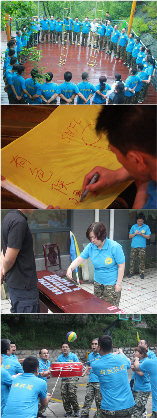 在開營儀式上,參訓人員被隨機分為三隊,按規定在15分鐘內確定各自隊名、隊長、隊呼及隊歌。經過各隊熱烈而認真的討論,確定了三個團隊名稱分別為“先鋒隊”、“井隊”和“火箭隊”,為期兩天的拓展訓練正式開始。