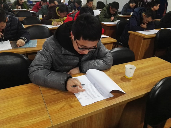 上午九點(diǎn)競(jìng)賽正式開始。參賽人員拿到題后,細(xì)心瀏覽并作答,現(xiàn)場(chǎng)答題氛圍安靜嚴(yán)肅。據(jù)悉,此次競(jìng)賽題目分為兩類,分別是土建和安裝專業(yè),由施工方案競(jìng)賽評(píng)選領(lǐng)導(dǎo)小組出題。通過對(duì)現(xiàn)場(chǎng)答題職工的采訪,他們認(rèn)為此次競(jìng)賽的題量適中,題目有深度,雖然按照書本知識(shí)能夠答完,但是要結(jié)合安全文明施工、綠色施工、優(yōu)質(zhì)結(jié)構(gòu)和新技術(shù)示范創(chuàng)建等要求,答題標(biāo)準(zhǔn)就必須提升檔次,不再局限于答完,更要求答好、答精。公司也據(jù)此為參賽人員留夠充足的答題時(shí)間,讓他們認(rèn)真思考,耐心作答。